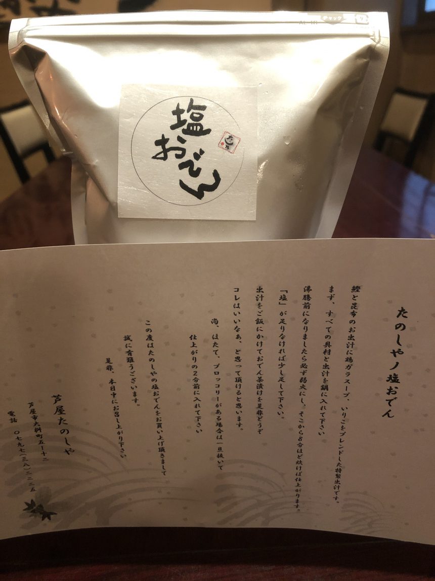塩おでんご注文は2人前より承ります。