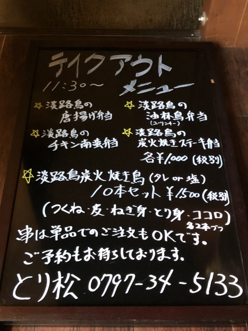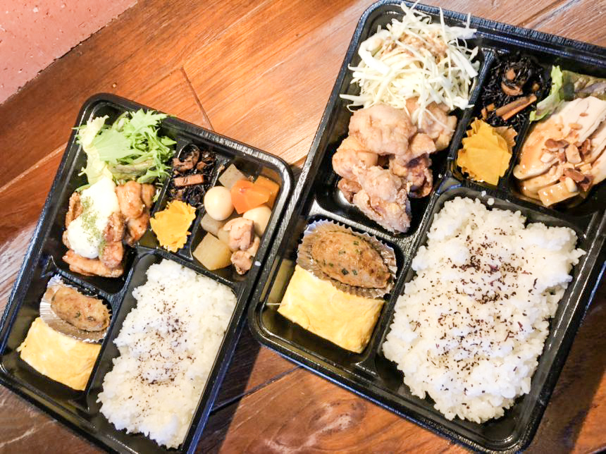 お昼から夕方のtakeout販売でお弁当、焼き鳥を売っています。