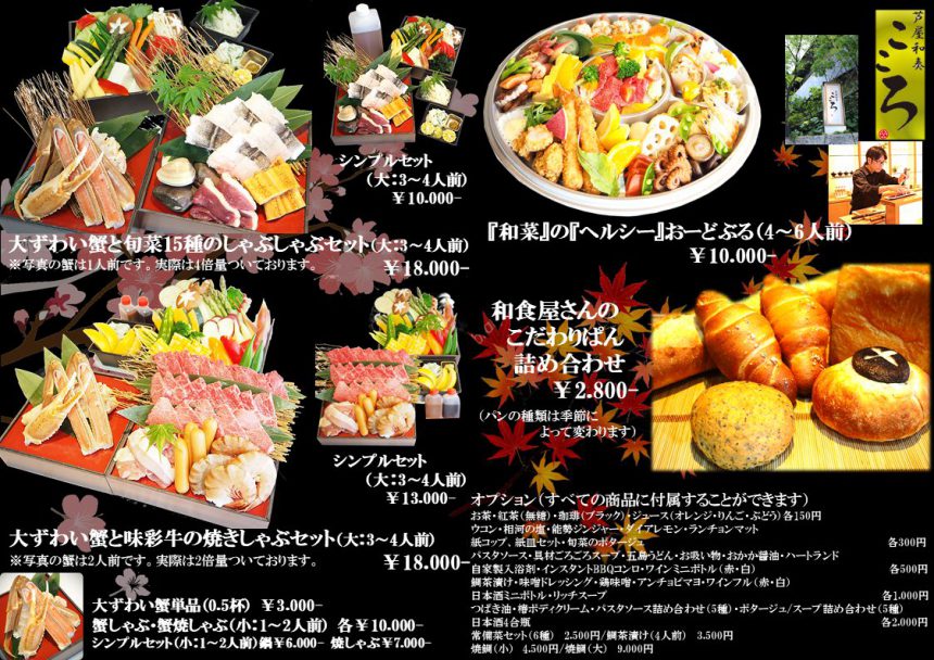 慶弔事、記念日、歓送迎会、接待、お集まり、等のお客様のニーズに合わせた、コース料理、お弁当、オードブル、和風パンの提供をおこなっております。